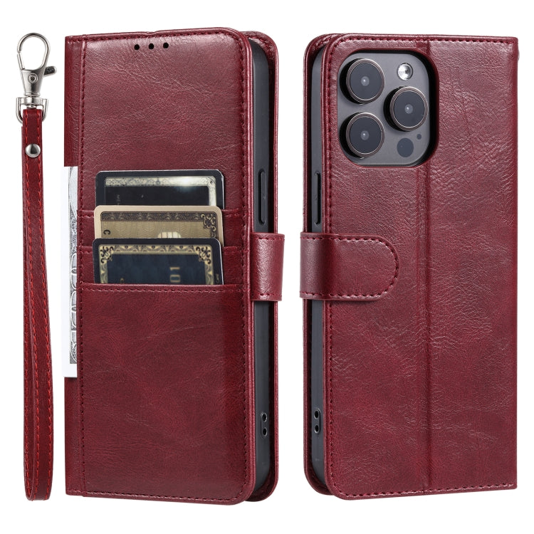 Funda de Cuero para Teléfono con Billetera para iPhone 16 Pro Max con Capacidad para 6 Tarjetas (Rojo Vino)