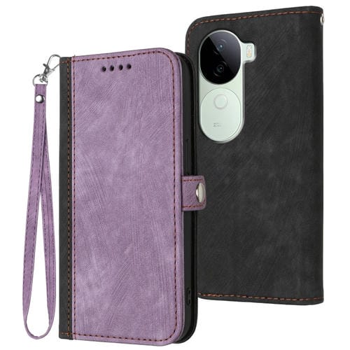 Funda de Cuero para Teléfono con Correa de Mano y Hebilla Lateral Doble Plegable para Vivo Iqoo Z9S/V40E (Morado)