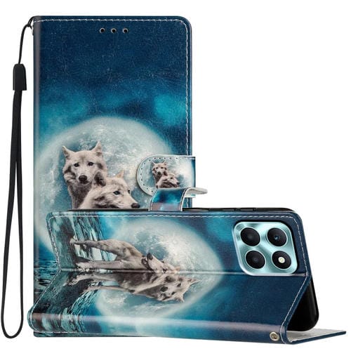 Funda de Cuero para Honor X6A con Dibujo Coloreado Lobos Gemelos