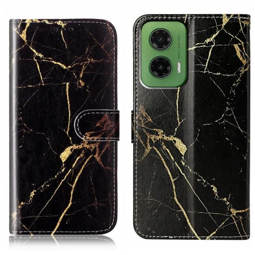 Funda de Cuero para Motorola Moto G35 con Patrón Mármol y Dibujo de Colores (Negro y Dorado)