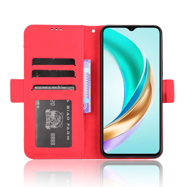 Funda de Cuero para Honor X6B 4G con Ranuras para Tarjetas y Textura de Piel de Becerro (Rojo)