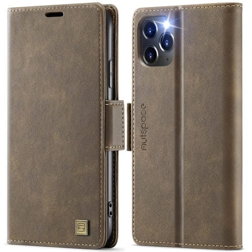 Funda de Cuero Magnética Rfid Magsafe con Hebilla Lateral para iPhone 11 Pro Autspace A11 (Café)