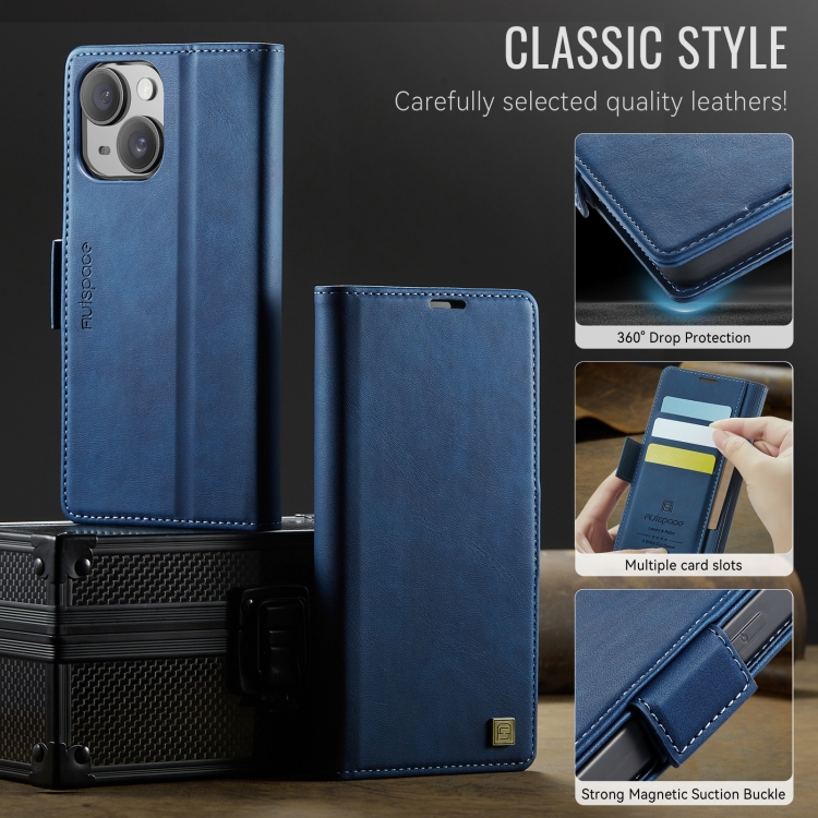 Funda de Cuero Magnética Rfid Magsafe Autspace A11 para iPhone 14 Plus (Azul)