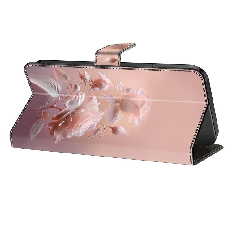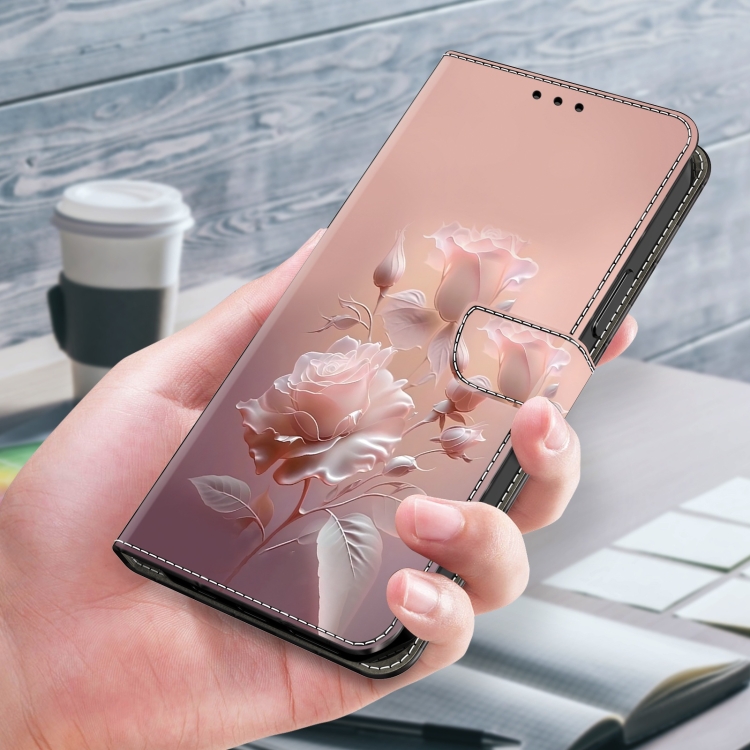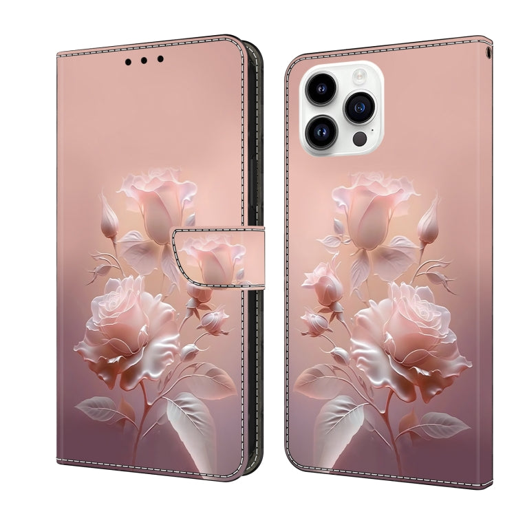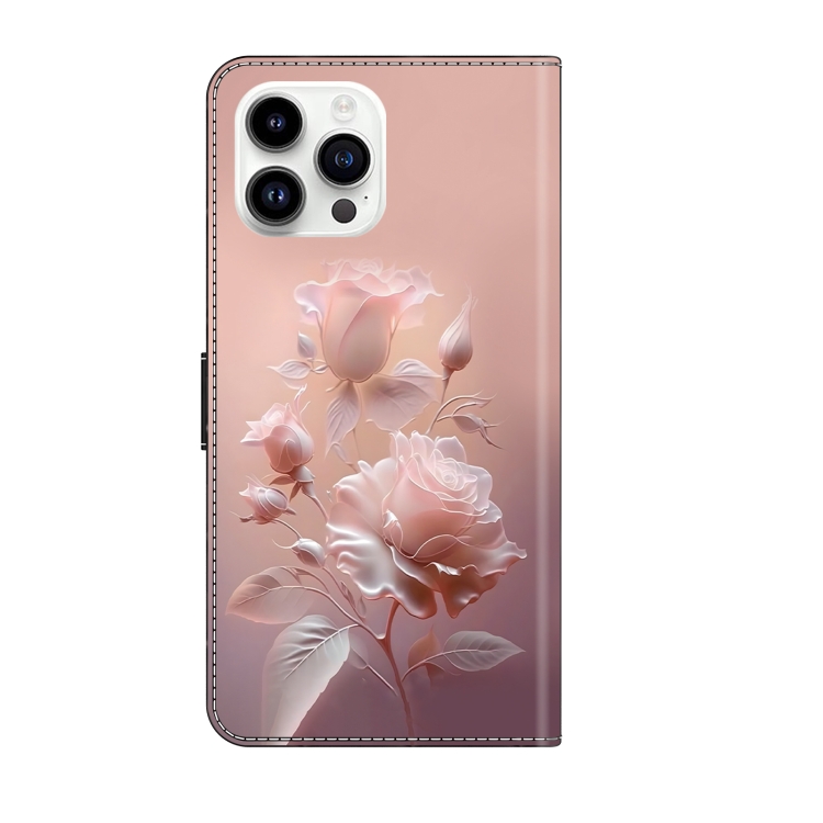 Funda de Cuero para iPhone 16 Pro Max Pintada a Mano Flores de Cerámica