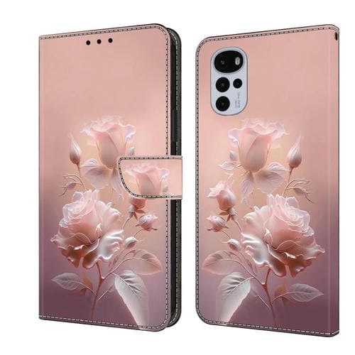 Funda de Cuero Pintada a Mano Motorola Moto G22 Flores de Cerámica