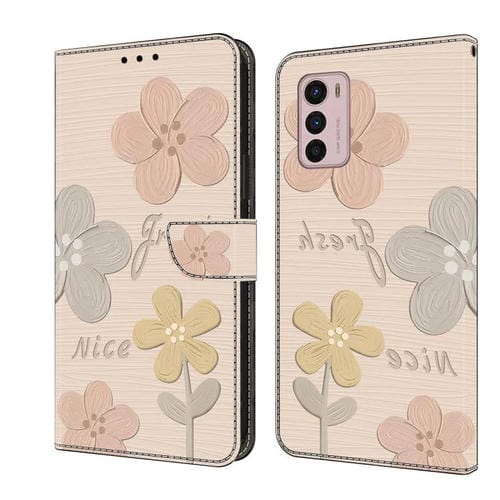Funda de Cuero Pintada a Mano para Motorola Moto G42 (Flores Beige)