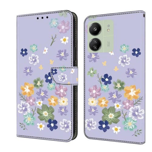 Funda de Cuero Pintada a Mano para Redmi 14C 4G (Floral Morado)