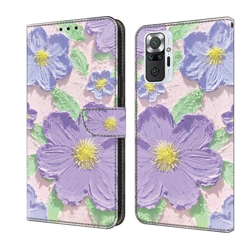 Funda de Cuero Pintada a Mano para Redmi Note 10 Pro 4G (Pintura al Óleo con Flores Moradas)
