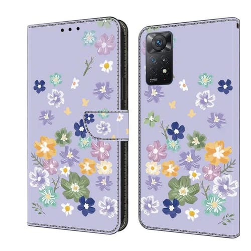 Funda de Cuero Pintada a Mano para Redmi Note 12 Pro 4G/11 Pro (Floral Morado)
