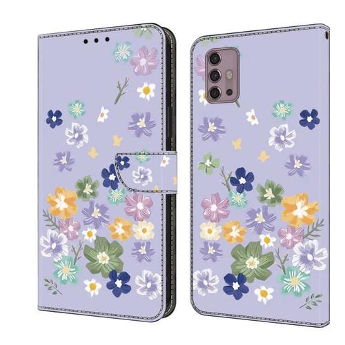 Funda de Cuero Pintada a Mano para Motorola Moto G30 (Floral Morado)