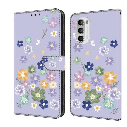 Funda de Cuero pintada a mano para Motorola Moto G52 (Floral Morado)
