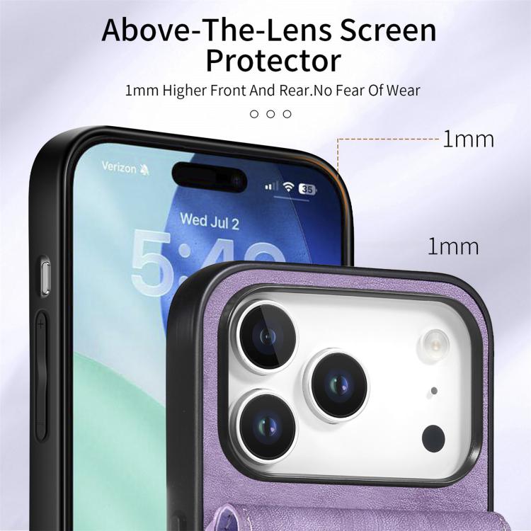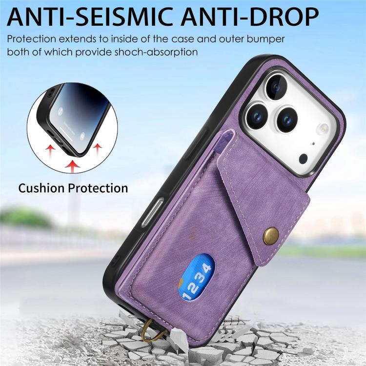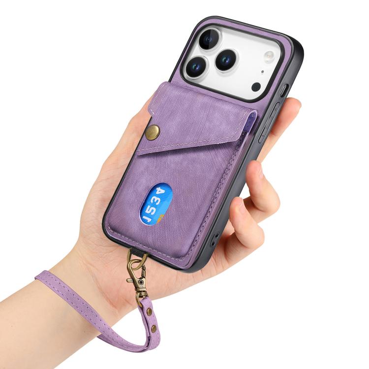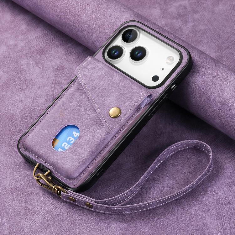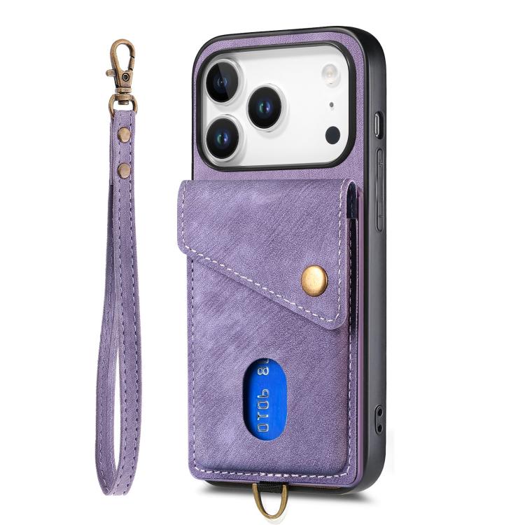 Funda de cuero plegable estilo billetera retro para iPhone 17 Pro Max con correa (morado)