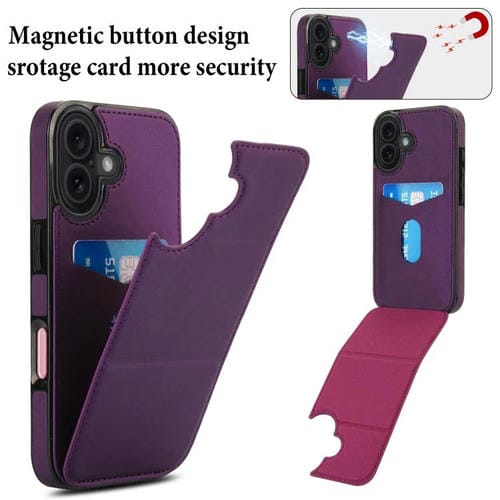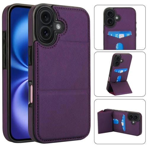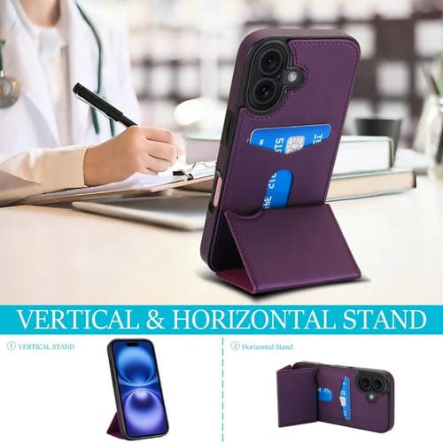 Funda de cuero plegable triple para iPhone 17 con ranura para tarjetas (morado oscuro)