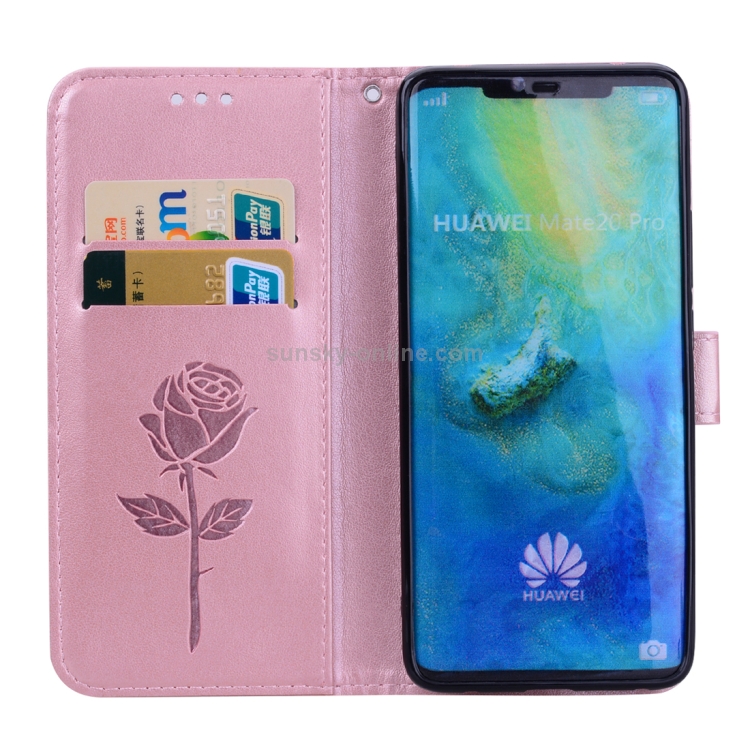 Funda Cuero Pu con Tapa Horizontal para Huawei Mate 20 Pro con Soporte y Ranuras (Oro Rosa)