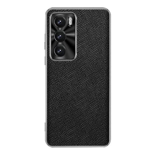 Funda de Cuero Pu con Textura Cruzada y Borde Plateado para Oppo Reno12 Global (Negro)