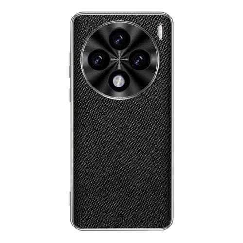 Funda de Cuero Pu con Textura Cruzada y Borde Plateado para Vivo X100S (Negro)