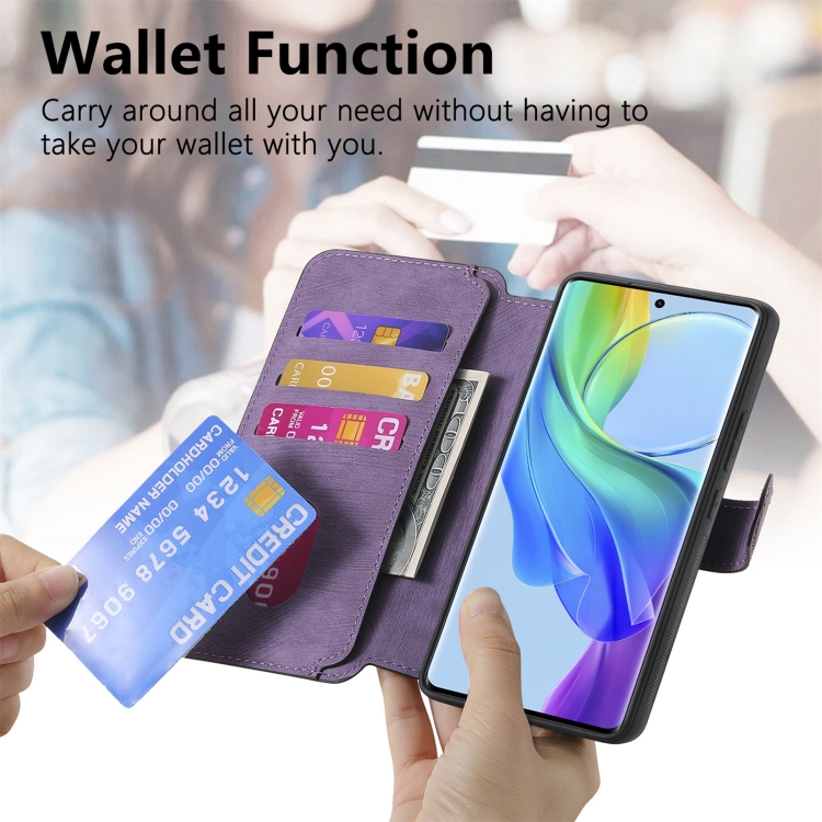 Funda de Cuero Retro Antirrobo con Rfid y Magsafe para Vivo V29 Lite (Morado)