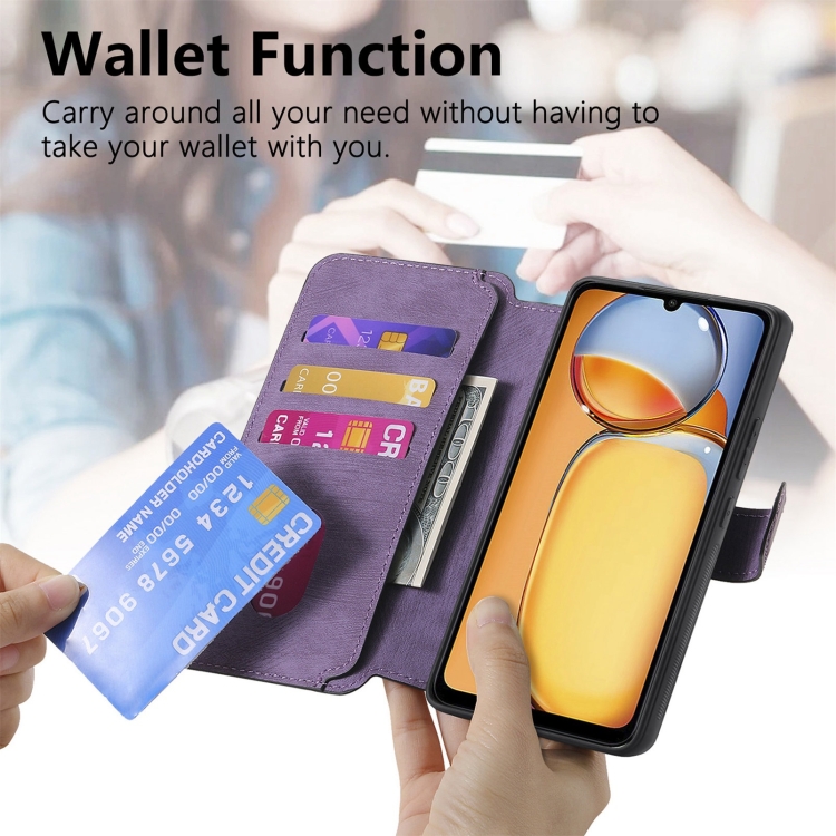 Funda Neo Magsafe Rfid Antirrobo de Cuero Retro para Xiaomi Poco M6 (Morada)