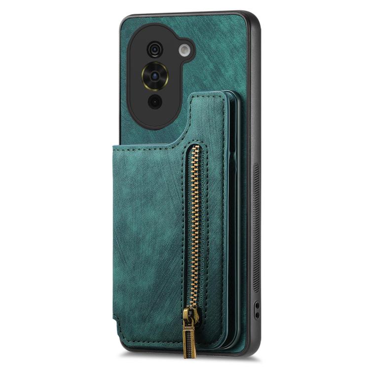 Funda de Cuero Retro con Cremallera para Huawei Nova 10 (Verde)