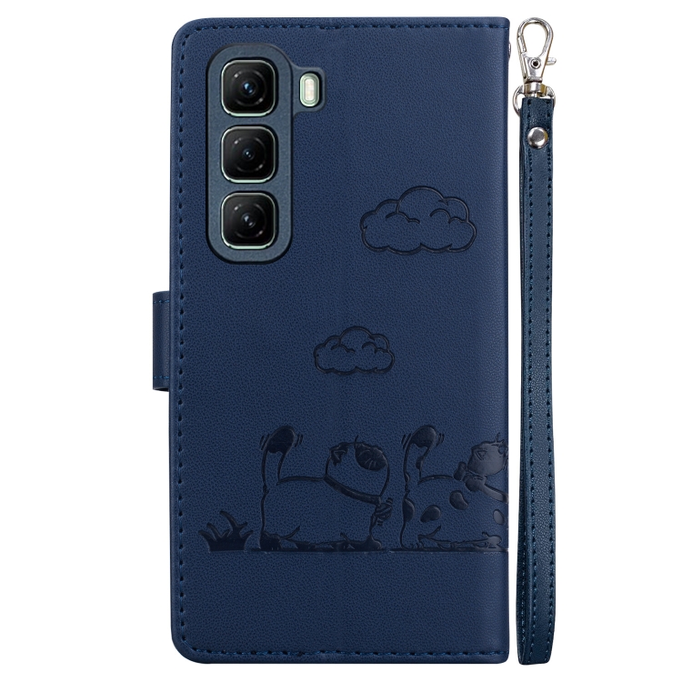 Funda de Cuero Rfid para Infinix Hot 50 5G con Diseño de Gatos (Azul)