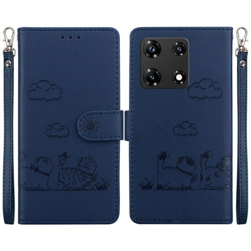 Funda de Cuero Rfid para Infinix Note 30 Pro con Diseño de Gatos (Azul)
