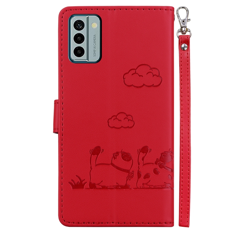 Funda de Cuero Rfid para Nokia G22 con Diseño de Gatos (Rojo)