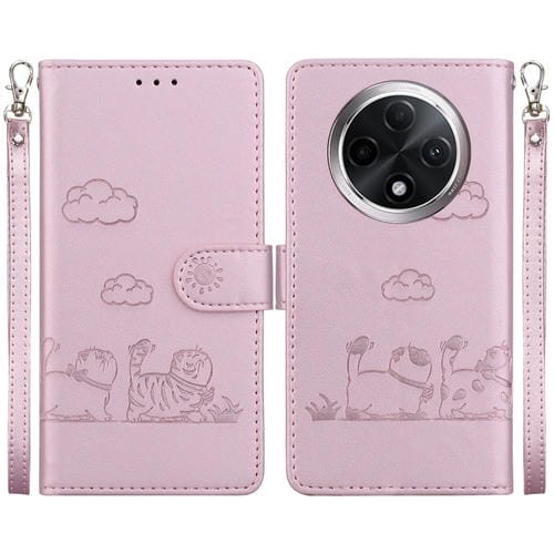 Funda de Cuero Rfid con Diseño de Gatos para Oppo A3 Pro 5G Global (Oro Rosa)