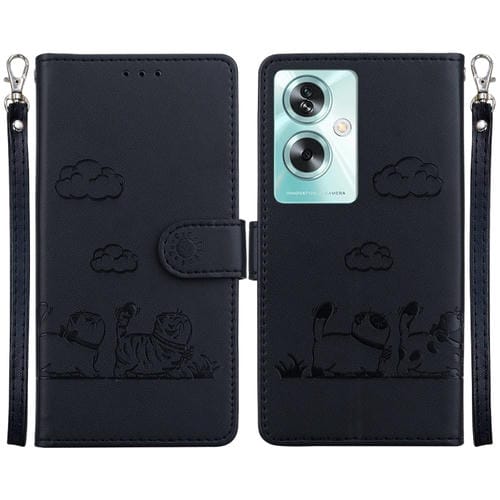 Funda de Cuero Rfid con Diseño de Gatos para Oppo A79 5G Global (Negra)