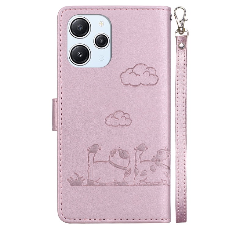 Funda de Cuero Rfid con Diseño de Gatos para Redmi 12 4G/5G (Oro Rosa)