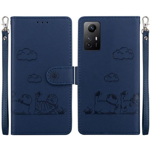 Funda de Cuero Rfid con Diseño de Gatos para Redmi Note 12S (Azul)