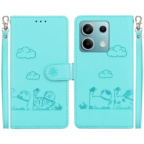 Funda de Cuero Rfid con Diseño de Gatos para Redmi Note 13 5G (Verde)