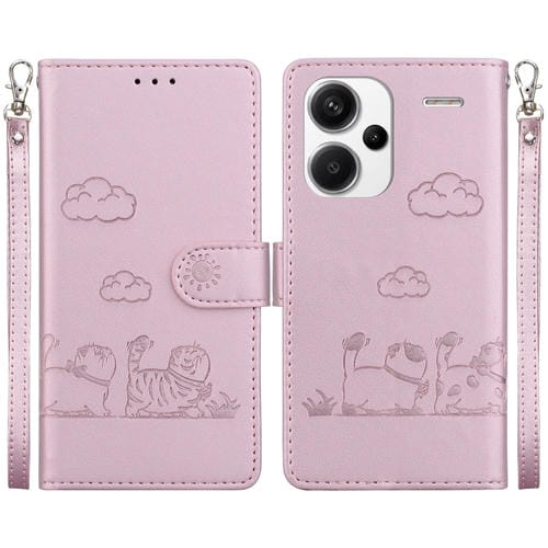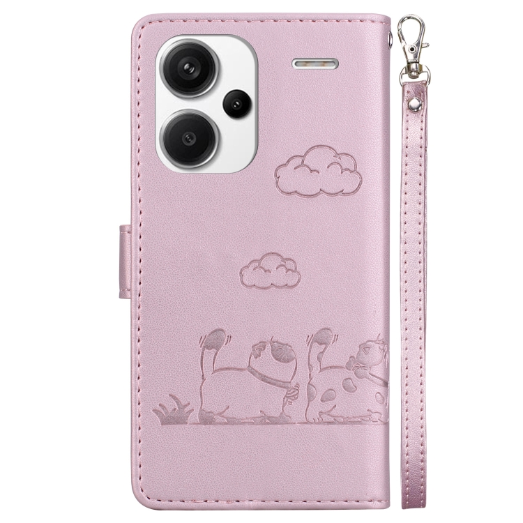 Funda de Cuero Rfid con Diseño de Gatos para Redmi Note 13 Pro+ 5G (Oro Rosa)