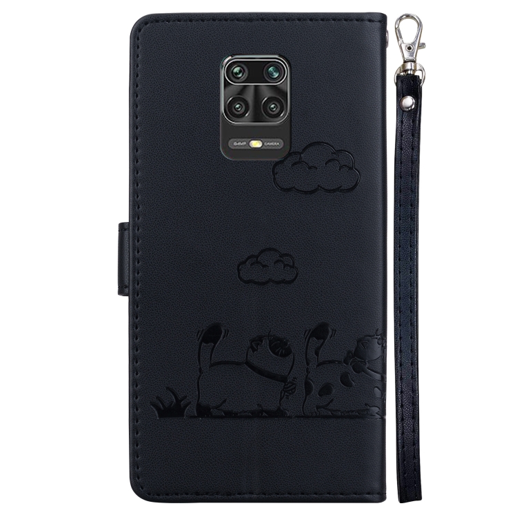 Funda de Cuero Rfid con Diseño de Gatos para Redmi Note 9 Pro (Negra)