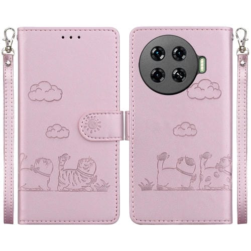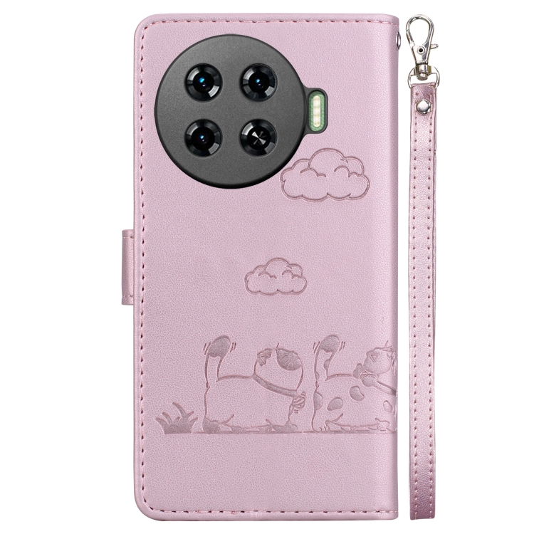 Funda de Cuero Rfid para Tecno Spark 20 Pro+ 4G con Diseño de Gatos (Oro Rosa)