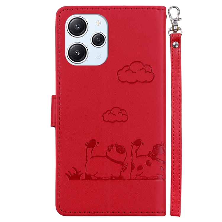 Funda de Cuero Rfid con Diseño de Gatos para Xiaomi Poco M6 Pro 5G (Roja)