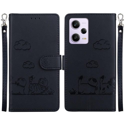 Funda de Cuero Rfid con Diseño de Gatos para Xiaomi Poco X5 Pro (Negra)