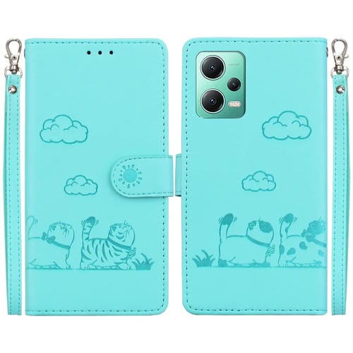 Funda de Cuero Rfid con Diseño de Gatos para Xiaomi Poco X5 (Verde)