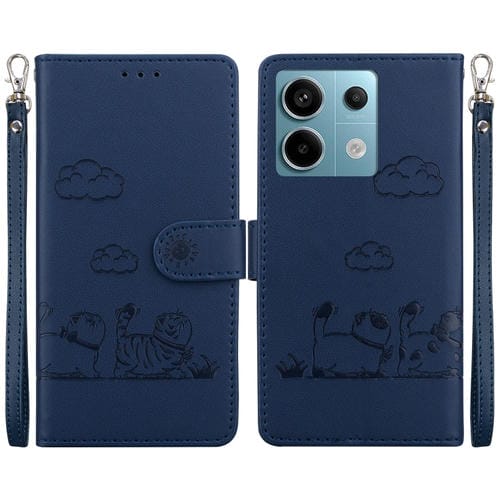 Funda de Cuero Rfid con Diseño de Gatos para Xiaomi Poco X6 5G (Azul)