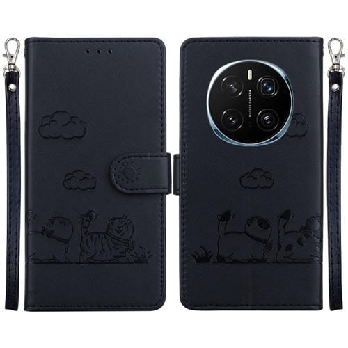 Funda de Cuero Rfid para Honor Magic7 Pro con Diseño de Gatos (Negra)