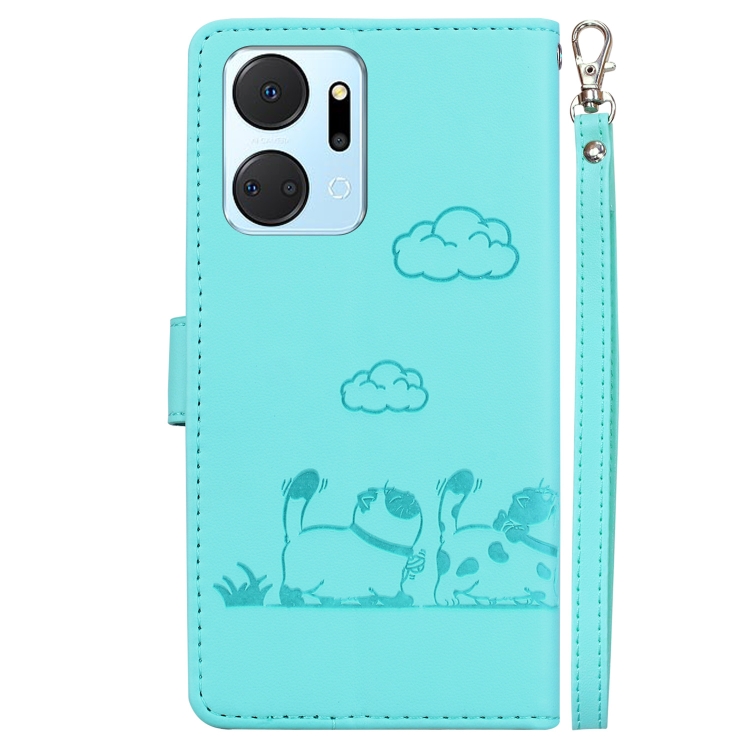 Funda de Cuero Rfid para Honor X7A con Diseño de Gatos (Verde)