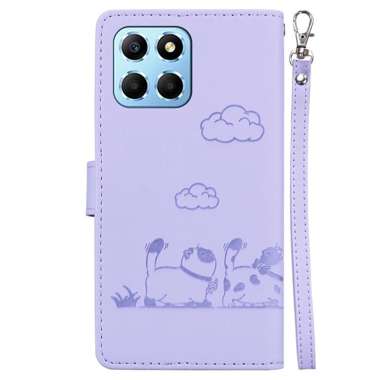 Funda de Cuero Rfid para Honor X8 5G con Diseño de Gatos (Morada)