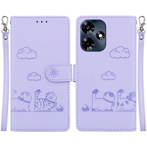 Funda de Cuero Rfid para Infinix Hot 30 4G con Diseño de Gatos (Morado)