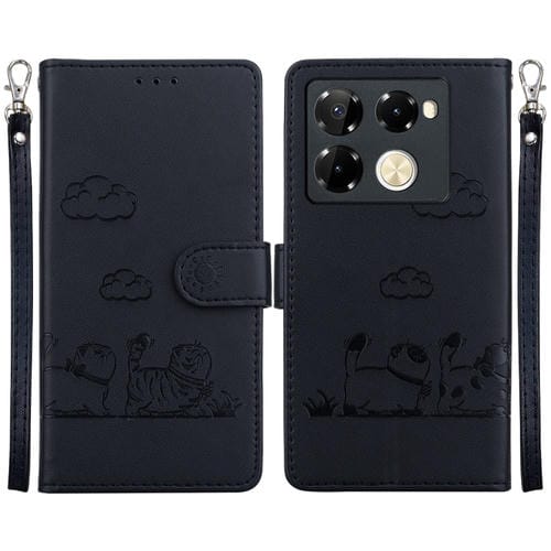 Funda de Cuero Rfid para Infinix Note 40 Pro 5G/4G con Diseño de Gatos (Negra)