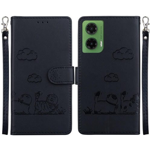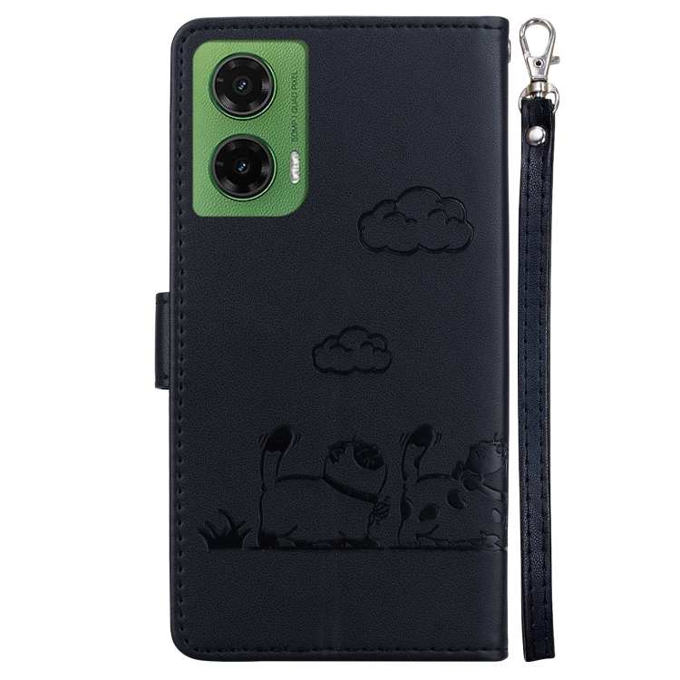 Funda de Cuero Rfid para Motorola Moto G35 con Diseño de Gatos (Negra)