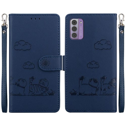 Funda de Cuero Rfid para Nokia G42 con Diseño de Gatos (Azul)