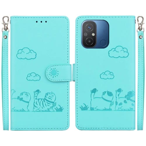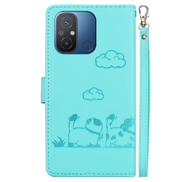 Funda de Cuero Rfid con Diseño de Gatos para Redmi 12C/11A (Verde)