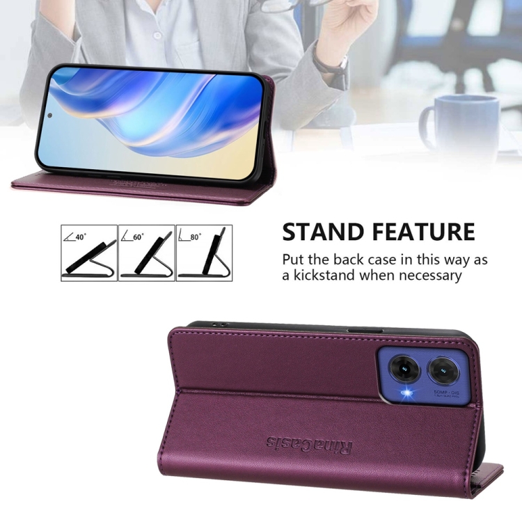 Funda de Cuero Rfid para Motorola Moto G85 Rc01 con Doble Pliegue y Succión Magnética (Violeta)
