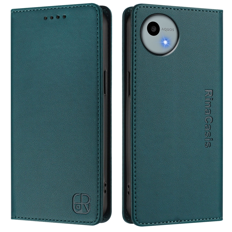Funda de Cuero RFID para Sharp Aquos Wish4 Sh-52E Rc01 con Doble Pliegue y Succión Magnética (Verde Oscuro)