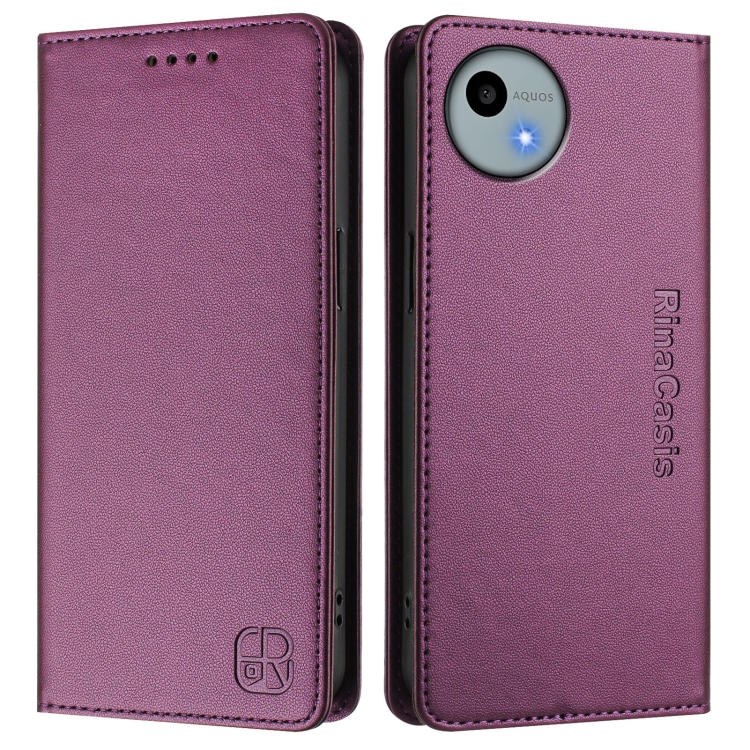 Funda de Cuero para Sharp Aquos Wish4 Sh-52E Rc01 con Doble Pliegue y Succión Magnética Rfid (Violeta)