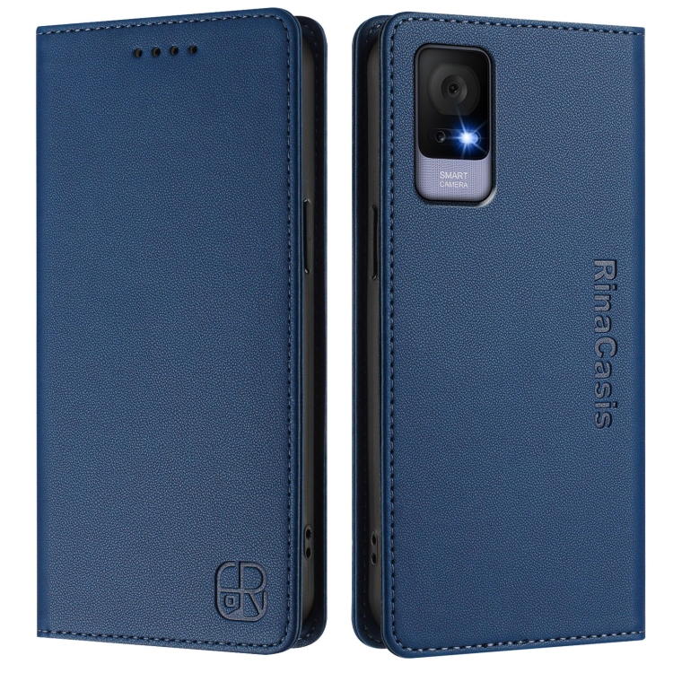 Funda de Cuero Rfid para TCL 405/406/408 Rc01 con Doble Pliegue y Succión Magnética (Azul Oscuro)